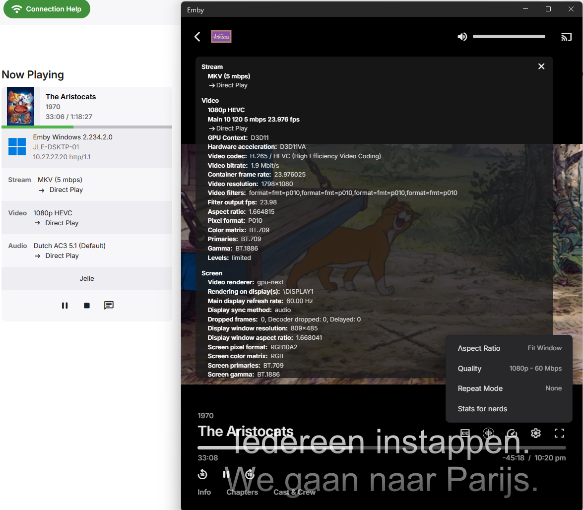 Hello @Luke When I watch a movie with HDR or Dolby Vision and a bitrate of 50–70 Mbps, the TV doesn’t switch to HDR or Dolby Vision (depending on the movie) when using the Emby app for Android version 3.5.28 on the Google Streamer. The movie is unwatchable; it stutters severely. Sound: DTS 5.1 and AC3 5.1 It works perfectly with the Emby app for Android TV.
