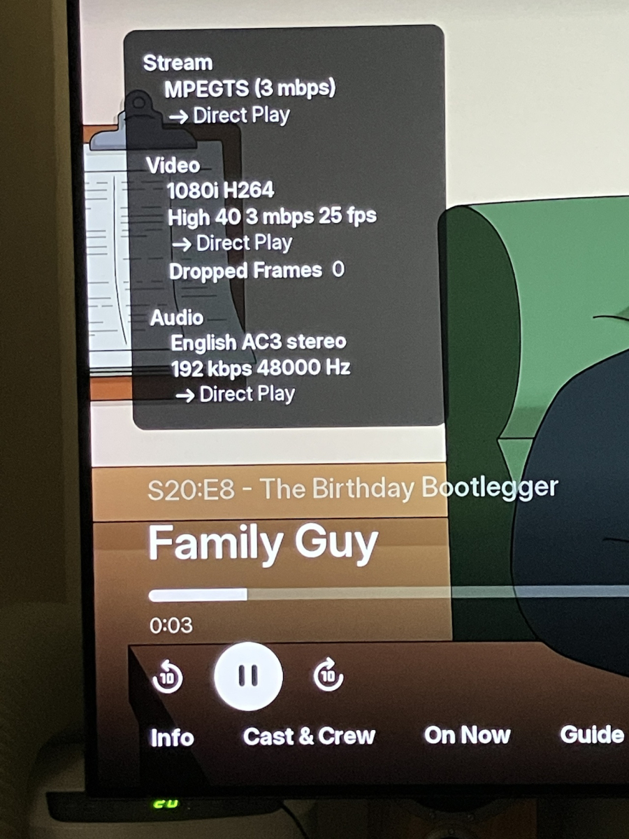 hi there, I have checked back and the interlaced one does not play, however there is other interlaced recordings that do play. I checked this in mediainfo. there is other recordings with scan type MBAFF, some play, some do not. so I don't think this is the problem. To confuse you even more i have recorded the same programme on the same channel, a quiz show, 1 plays 1 does not. it seems to be luck of the draw. if I start a playback on the other lg tv or emby windows app and resume on the lgtv with the issue, it will playback ok. just does not playback from the beginning. ive attached to pictures with stats for nerds, everything i watch on emby is direct play. thanks