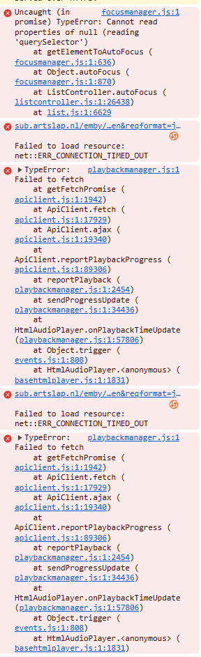 Had another freeze, this time it seems that it was caused by `focusmanager.js`: I'm not really sure which element it was that broken, but since that the fetch is causing timeouts / failures. The server has been responsive throughout this freeze (since I was coincedentally connected and working on it remotely).