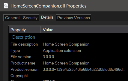 When I download 3.0.0.1 from GH link: https://github.com/soderlund91/HomeScreenCompanion/releases/tag/v3.0.0.1 It loads in Emby as 3.0.0.0 still Even the .dll version info on the file says 3.0.0.0 Did it not get updated correctly?