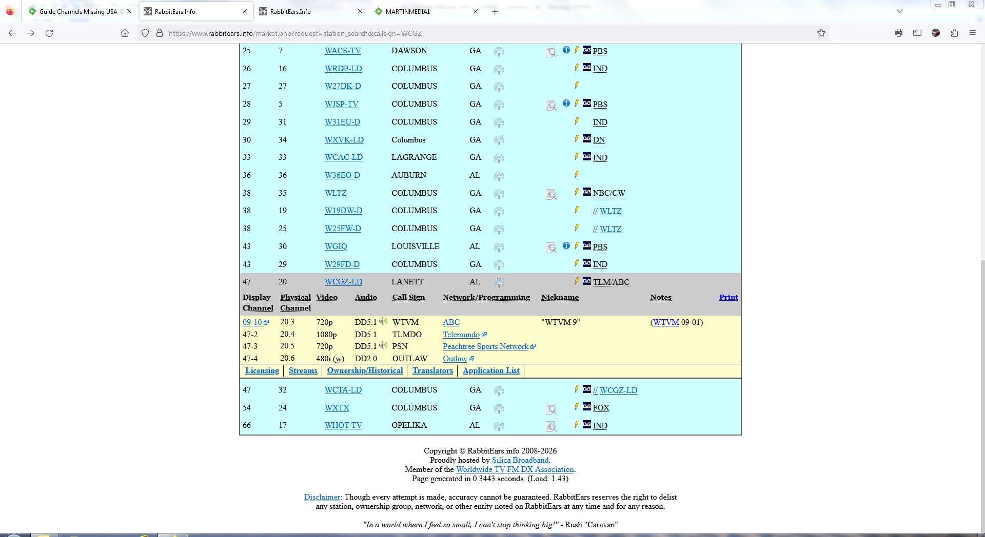 @martincomWhat is the Guide Lineup identifier ? You will see that in Live TV Server Settings setup tab. It will be in the form of USA-xxxxx-DEFAULT Gracenote do not normally include low power stations in their lineups. I need to know zip code/lineup identifier to start looking and also what TV market does your area come under. I see these markets listed for Alabama on https://www.rabbitears.info/ Birmingham, Alabama Mobile, Alabama untsville, Alabama Montgomery, Alabama Dothan, Alabama -