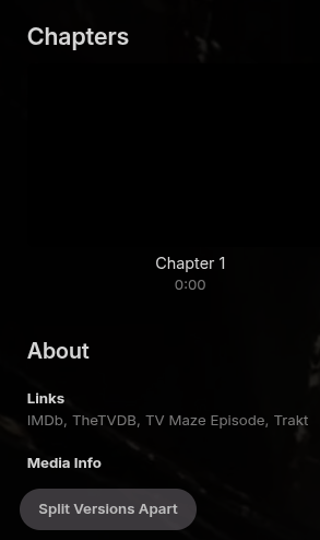 That is my question, how do I split them in Emby? I don't see any option to do that, there is only the drop down under the version. They are already split on the file system I tried selecting the edit metadata, but no matter which of the versions is selected, the metadata editor always shows the same 2018 file in the file path?