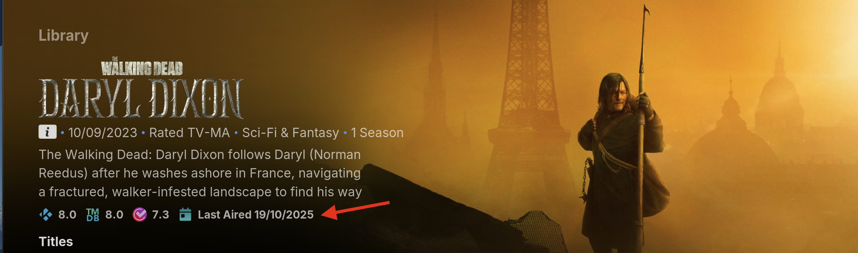 would it be possible to add a "Last Aired" date to the Quick Info section for TV shows in Emby to display when the most recent episode aired. Benefits of "Last Aired" date: See how recently a show aired Determine if a series is canceled, on hiatus, or returning Identify series finale air dates Complement "First Aired" and upcoming episodes info "Last Aired" provides a quick way to check a show's status. It would make Emby's TV show pages even more helpful at a glance. Thanks