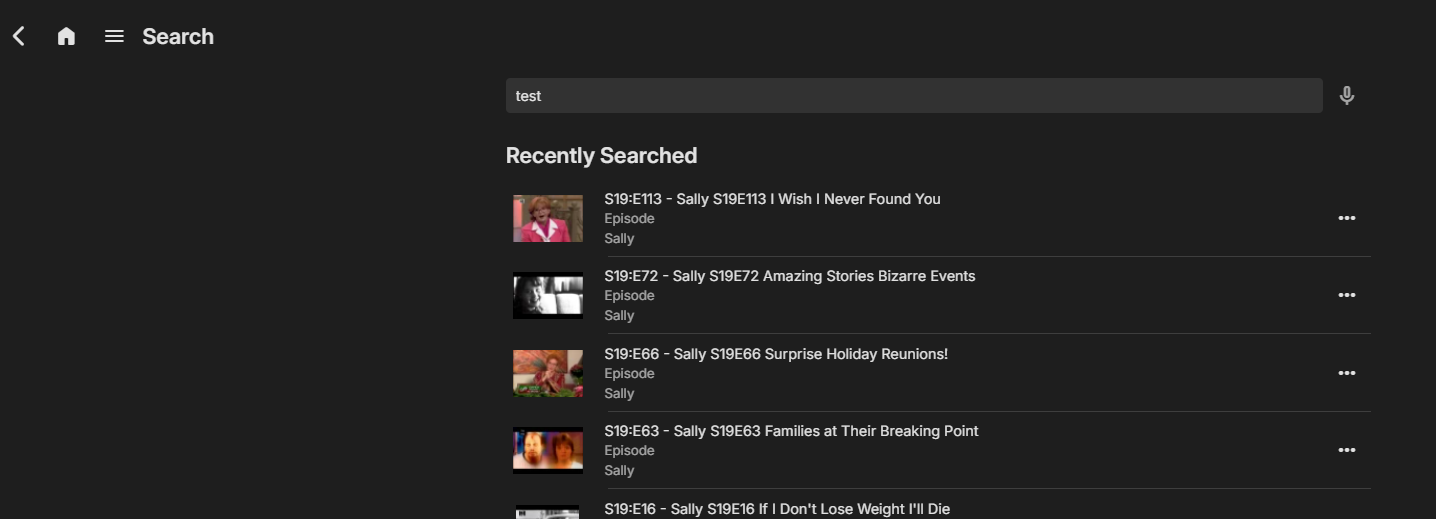 I'm not sure exactly when this began but at least in the past few beta versions I now have a "Recently searched" which appears before my search results. Not only is this annoying, I cannot find a way to shut this off, and it shows results for items not related to the search itself. In addition, there are now huge gaps of empty page space between this and search results. i watched one episode of Sally yesterday. I did not search for the episode, yet it insists that I did and that I had searched for many others. Its unfortunate that the most basic functionality of Emby which has worked perfect for years is now broken. What is the fix for this? More nonsense: More nonsense: