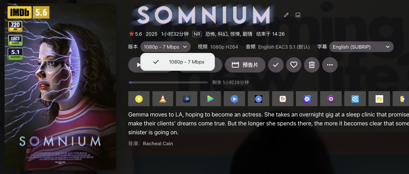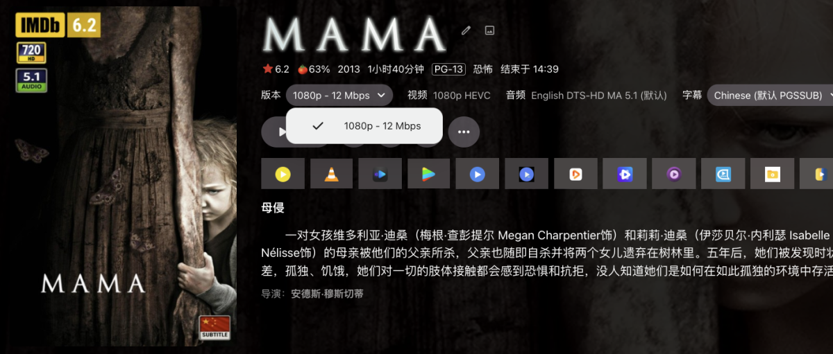 Another movie, which resolution is 1920*1040, it also show 720p. It seems that the plugin recognize all the movie which heighth is less than 1080 as 720p.