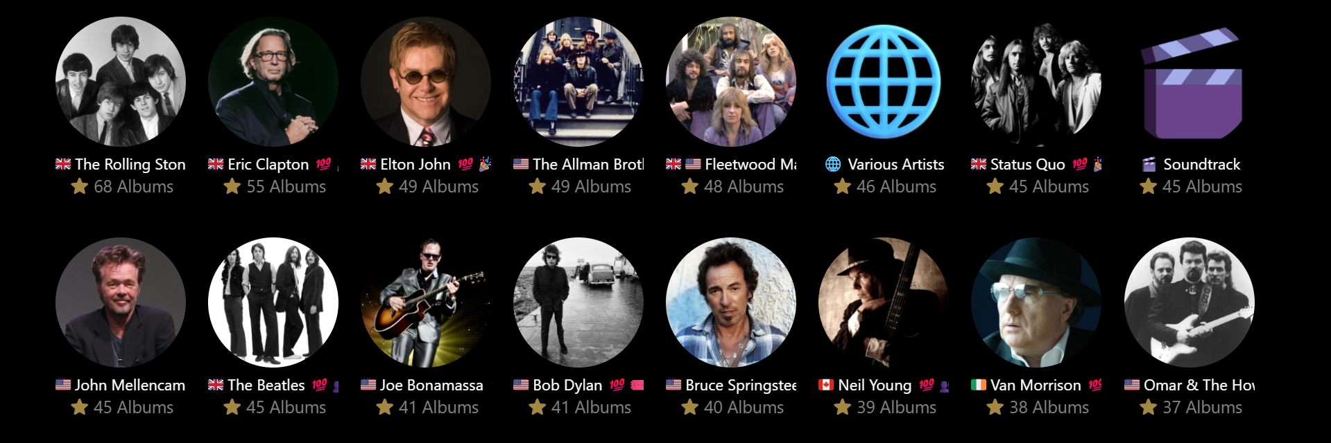 Well, I've recently figured out a way to get this working, for the Albums Count, by repurposing the AlbumArtist Community Rating field in the metadata editor: Manually add the AlbumArtist Albums Count, divided by 10, to the Community Rating (because the allowable range is 0.1 to 10). Use CSS to change the rating star color to yellow (or, if wanted, whatever color you want). Use JavaScript to multiply by 10, to get back to the correct Albums Count, and append "Album" or "Albums" text. This all sounds a bit convoluted, but it's easier to do than what it sounds like! Sorted by Title (ascending) shows tthis: Sorted by Community Rating (descending) shows this: An added bonus is the Albums Count also shows at the top of the AlbumArtist individual pages - and it can be made 'clickable'!!! The only minor downside is the Albums Count is static and must be manually updated. So, it took a little bit of time for the initial data entry, and I need to remember to update it when I add new albums - not a showstopper though and I haven't reached 100 Albums for anyone just yet! Other ideas to try when I get time: UseJavascript to fetch the Album Counts from the API and dynamically add them to the Community Rating field. Determine if another field can be repurposed for Songs Counts - but there doesn.t seem to many options??? But, so far, the concept has at least been proven workable and it is very useful!!! -