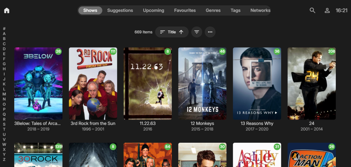 Yeah, I sort of get that. But when I use the horizontal home screen setting. I get what I think is a better home screen layout for use on a TV with a remote like this. And then for local library content I pick the Shows icon from the Home Screen above and get taken to this view, see below, which has the titles and years under the posters, the filter and sort options and the letter jump list. But the VOD content isn't handled in the same way. But I guess this is because it's different content provided externally and by the plugin. It would just be nice if the views were consistent for the content but appreciate the horizontal view is sort of legacy and the VOD content isn't structured the same as a local content library. It was just a kind of would be nice to have kind of request.