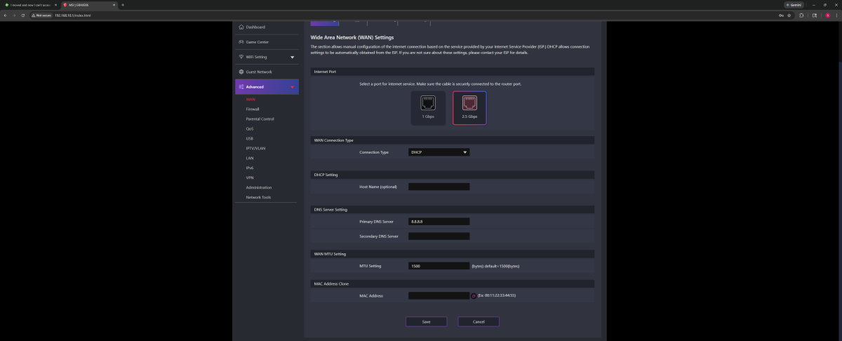 In the first image, it appears you are forwarding port 49494 to your WAN IP, this should be the servers LAN IP. You are also forwarding 8096 to your servers LAN IP, which directly exposes the HTTP port to the internet. Not a good idea generally, though this should at least show port 8096 as open in the port checking tool I provided earlier. (check if that's true. If not, again I suspect either cgnat or isp blocking) The second image looks like a filter list; defined by name. But the forwards above them are set to 'allow all', not referencing those filter names. (you shouldn't need filters unless you're trying to restrict connectionw to a specific remote IP, just ignore the filters for now) Based on the port 49494 in the third image, I assume you have a reverse proxy on that port, handling HTTPS and proxying to 8096? Is the proxy running and correctly accepting connections on its lan ip+port? You still have not shown/said you found your WAN IP as your router sees it. Look for connection details for the WAN interface of your routers management page. Should be somewhere under 'status' or similar. An example from mine: status > wan (you want the blue circle) -