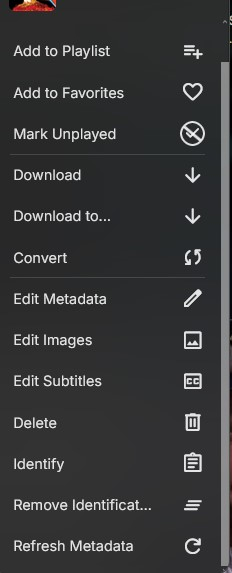 There's actually not the usual Split Versions Apart option for any of the duplicates in this library. Instead I have these options (not showing is Add To Collection because I scrolled down) -