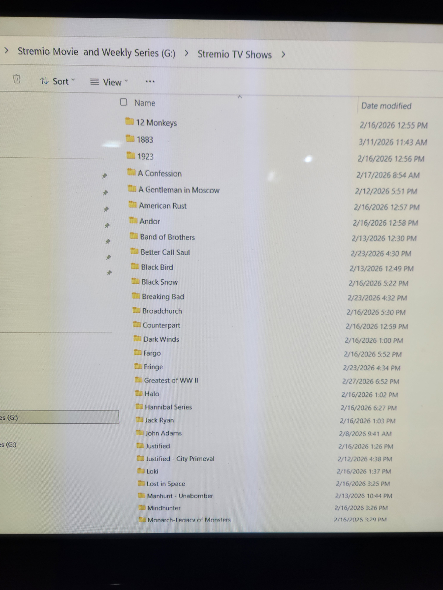 I have them under the tv shows option. The shows are located on a portable hard drive. The shows are located in individual folders with the season number then episode number then name of show in each individual folder. Example: folder for show 1883. Then in that folder will be S01E01 then name of the episode following