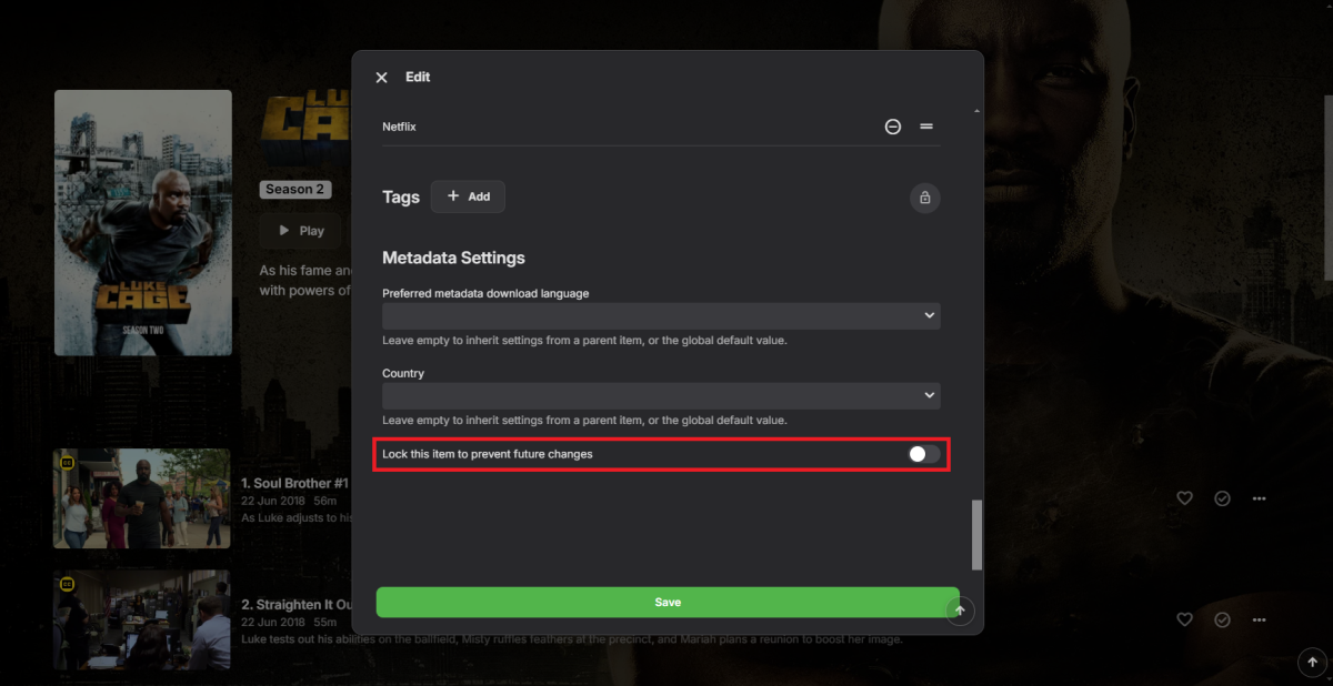 I edited the metadata manually, fixing all the text, the season, and the Netflix and TVDB id's. Now it shows up as S02E01. I suppose this is ok until I refresh the metadata on Luke Cage. Any idea why only this one episode is being misidentified?