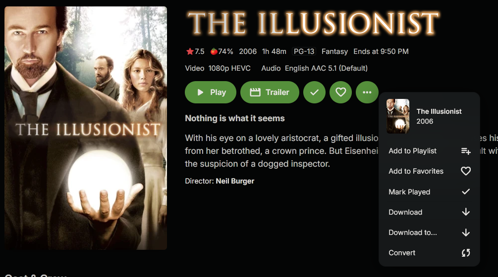 Would you please clarify what you mean by "Movie Detail screen"? If you mean, just the window/menu that's displayed after selecting the movie from the Movie library, then, there's no "edit/download subtitles" option in that list: -