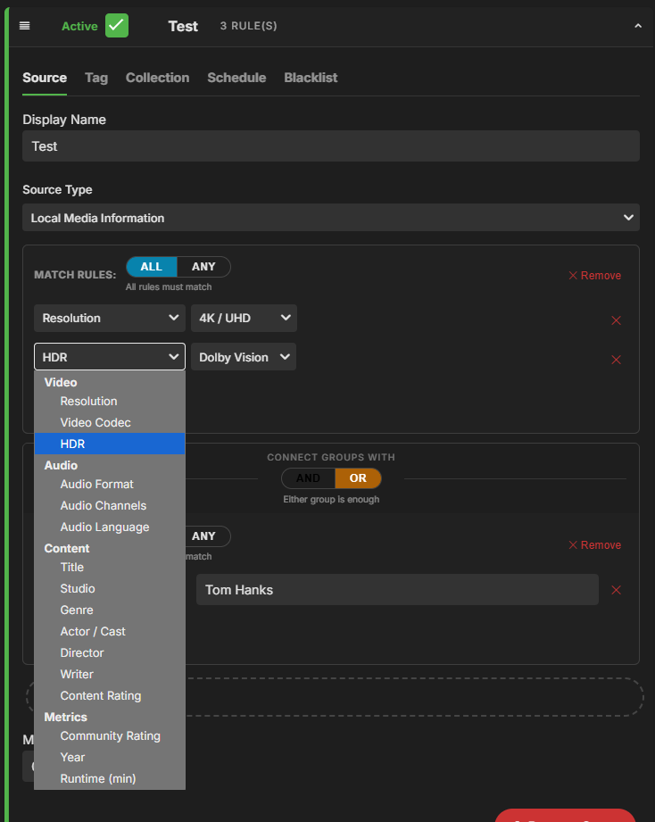 Beta release - Version 2.3.1.0-beta Download .dll here: https://github.com/soderlund91/AutoTag/releases/tag/v2.3.1.0 Also attached to this post Releasing this as a beta sinse i havent tested all functionality, and i need your help to find bugs etc. Please help me find and report! This update includes major improvements to the handling of local media information. Make sure to back up your settings before updating! Improvements Local media information: Significantly improved selection and filtering when using local media information as a source. Added multiple filtering options (e.g., resolution, media codec, title, actor, director). Added AND/OR logic for filtering. UI/UX: Introduced a separate menu for tag settings (creating a tag is enabled by default). If you dont enter a separate "tag name" it will get it from the Display name from the source-tab. Also removed the option from Collection-tab to not create a tag. Fixes Save button: Fixed an issue where saving was possible during an active run (could lead to data corruption). Known bugs When running a filter based on local media information on a large library, Emby may become slow or temporarily unresponsive (continuous loading spinner). Be patient and allow it to complete for a minute. I beleve database writes may still be in progress even after the plugin run has finished. Screenshot: AutoTag.dll