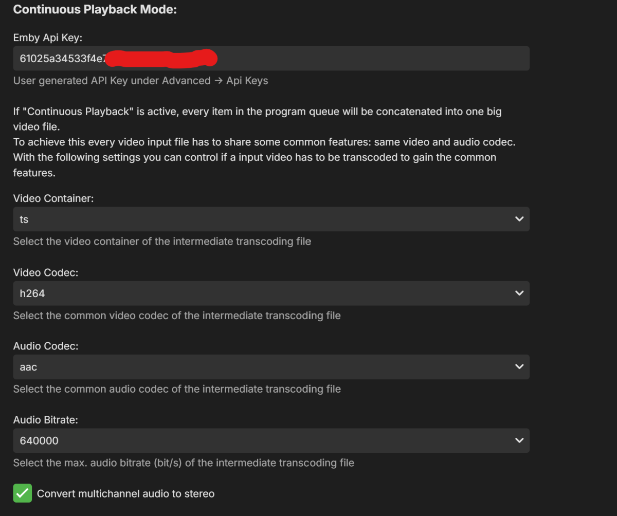 When i go back to "Continuous Playback (Live)" nothing changes. LiveTV still crashes when i quickly switch the channels. Virtual TV Plugin 2.1.7.5 / Emby Server 4.9.3.0 Stream export http://192.168.x.x:8096/emby/VirtualTV/4520751/stream.ts?StreamType=Universal&Timeout=10&Token=40c59369f15645.............