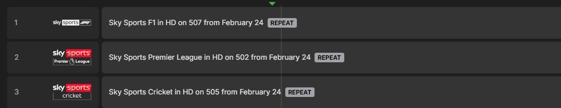 I've got the same and I was thinking of posting here, but I assumed it would sort itself out at some point. Screenshot below of the ones I have noticed. But even after forcing a refresh of everything, the EPG for channel 507 (Sky SPorts F1 example) using the Sky Q Emby Guide Data still has the nhkwldh channel and EPG data. I found this which mentions a bunch of channel changes for today. Changes to the TV Guide - February 2026 | Sky Community