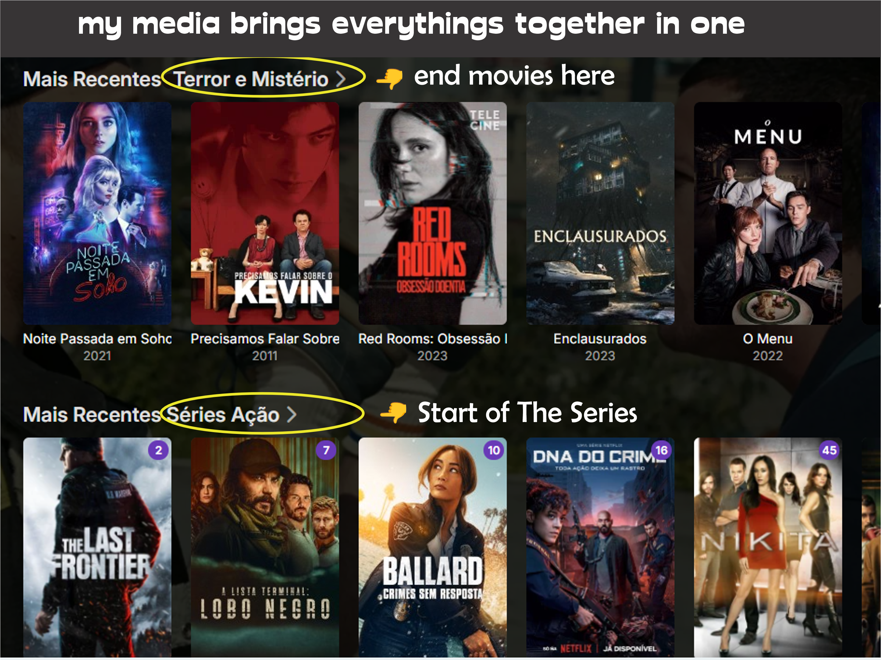 Djglaucio 4 Posted October 13 Author Posted October 13 9 hours ago, Djglaucio said: vou ver amanha...obg uhuuu vi hoje e respondi la..exemplo do tudo junto... no meu video no youtube https://youtu.be/kT3IqVpQ6a0 uma das mudanças sugeridas por mim(para o EmbyPlus (2026) e a de ter varias "entradas separadas na biblioteca" para diferentes streamers biblioteca 1=filmes. biblioteca 2=series. biblioteca 3=shows. biblioteca 4=conteudo adulto TODAS INDEPENDENTES UMA DA OUTRA imagens ilustrativas criei pra chamar atençao...apenas isso 1