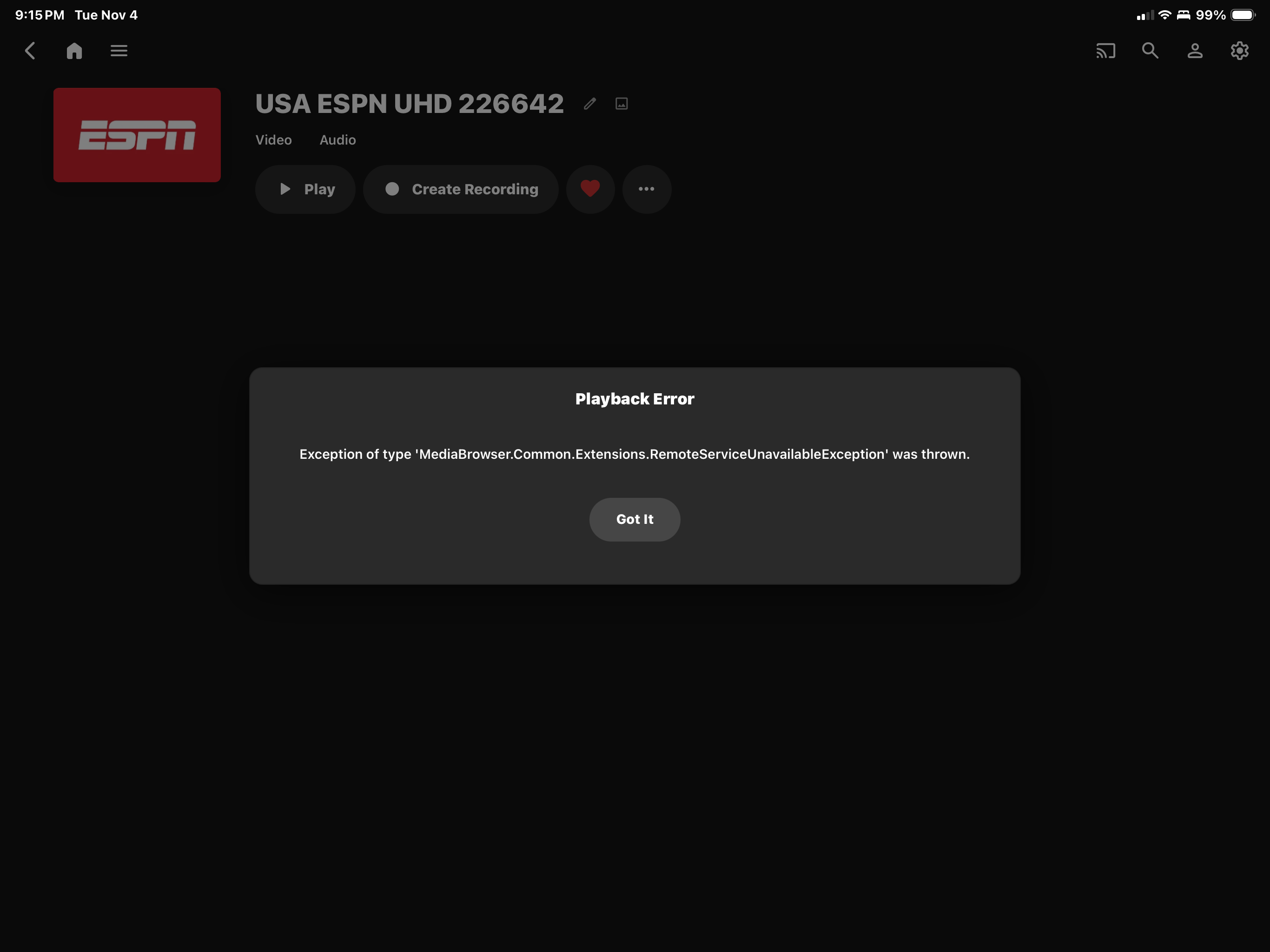 howieT82 2 Posted November 5 Posted November 5 Hello I setup my IPTV service to be used through Emby and its amazing but now I can’t get anything to play I keep getting this error message when I try to watch any channels