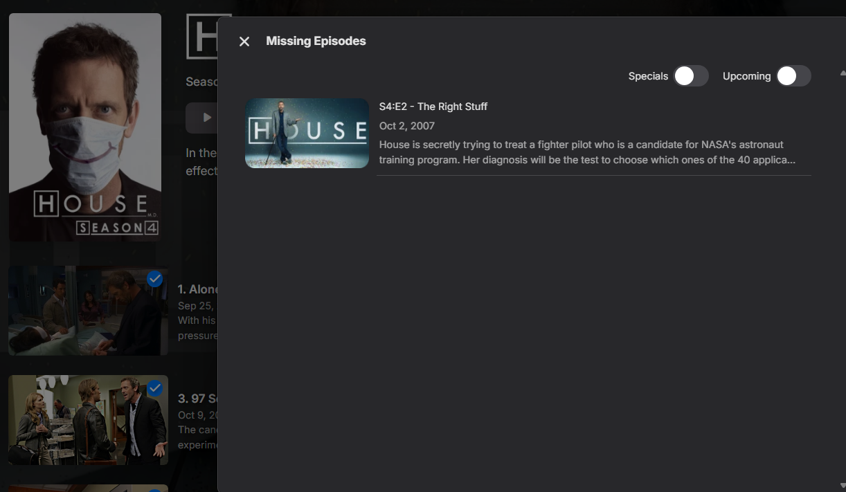 FredrikT 24 Posted August 22, 2024 Posted August 22, 2024 On 05/06/2024 at 18:46, Happy2Play said: Going to be hard to say as it appear to work just fine here. So in your example it would suggest there is possibly something wrong with the entire Show. But server log for the specific example may help. Might even be provider language metadata issue? What metadata providers do you have enabled and in what order on that library? Which client is this from? I have the exact same problem as most other users in this thread; in Android (both tv and regular) I can't see missing episodes. On web, I can only see them if I remember to go into this special menu; But none of my users, myself included, use web. They use some form of android iOS, and then there's no way to see if there are missing episodes. So I plead, again: please bring this feature back. If you believe this requires too much hw/db resources, make it optional as some of us have more than enough resources on the server side. Mentioning @Luke as I recall you've been involved in this topic before.
