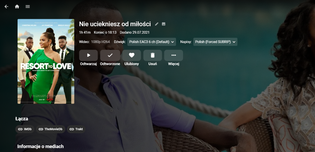 BoskiAlvaro 2 Posted July 29, 2021 Posted July 29, 2021 Hello, I have problem with automatic scan of library. When Ebmy Server find new file start downloading metadata (title, genre, poster etc) and it's fine. But it's not download all metadata. On every new position metadata like plot/description or information about actors are ommited (screen 1). When I refresh metadata manually all works well and missing data was downloaded (screen 2 - after manual refresh). It's happend with every new movie. In Emby Server logs I don't see any errors during scrapping (snippet below). Maybe someone have any idea what's happens? I'm pretty sure that some time ago it was work good also in automatic scan. If more information will be needed - I will give with pleasure EDIT: I just figured out on the first screen that info about genre also was not downloading on automatic metadata downloading 2021-07-29 10:36:15.715 Info LibraryMonitor: 1080p (/mnt/wd12tb/1080p) will be refreshed. 2021-07-29 10:36:51.244 Info Emby ScripterX: Waiting maximum 600000ms to call MediaItemAddedComplete for Item ID 132993 2021-07-29 10:36:51.368 Info MediaProbeManager: ProcessRun 'ffprobe' Execute: /bin/ffprobe -i file:"/mnt/wd12tb/1080p/Resort.to.Love.2021.MULTi.1080p.H.264/Resort.to.Love.2021.MULTi.1080p.H.264.mkv" -threads 0 -v info -print_format json -show_streams -show_chapters -show_format -show_data 2021-07-29 10:36:52.057 Info MediaProbeManager: ProcessRun 'ffprobe' Process exited with code 0 2021-07-29 10:36:57.010 Info HttpClient: GET https://api.themoviedb.org/3/movie/tt9647768?api_key=f6bd687ffa63cd282b6ff2c6877f2669&append_to_response=casts,releases,images,keywords,trailers&language=pl&include_image_language=pl,null,en 2021-07-29 10:36:57.341 Info HttpClient: GET https://api.themoviedb.org/3/movie/tt9647768?api_key=f6bd687ffa63cd282b6ff2c6877f2669&append_to_response=casts,releases,images,keywords,trailers&language=en&include_image_language=pl,null,en 2021-07-29 10:36:57.561 Info HttpClient: GET https://private.omdbapi.com?apikey=fe53f97e&i=tt9647768&plot=short&tomatoes=true&r=json 2021-07-29 10:36:58.735 Info HttpClient: GET https://api.themoviedb.org/3/movie/575428?api_key=f6bd687ffa63cd282b6ff2c6877f2669&append_to_response=casts,releases,images,keywords,trailers 2021-07-29 10:36:58.771 Info HttpClient: GET https://image.tmdb.org/t/p/original/w49o4vmNFpCt4VFJp7ip6tjHh3x.jpg 2021-07-29 10:36:58.929 Info HttpClient: GET https://image.tmdb.org/t/p/original/lwSZQFBgs43xbXPEwxYepoIxsn9.jpg 2021-07-29 10:36:59.050 Info HttpClient: GET https://webservice.fanart.tv/v3/movies/575428?api_key=5c6b04c68e904cfed1e6cbc9a9e683d4