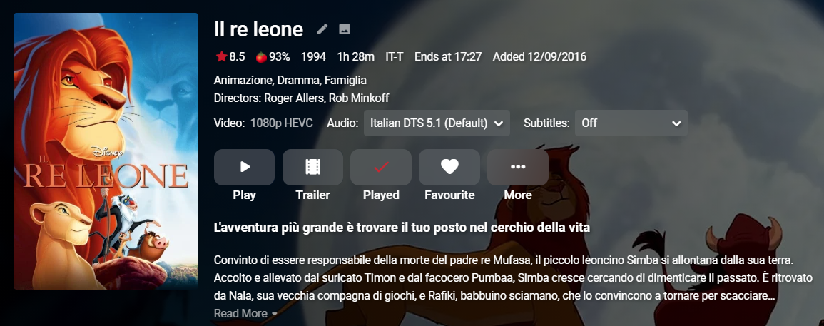 Bazzu85 22 Posted August 19, 2021 Author Posted August 19, 2021 (edited) On 16/08/2021 at 22:50, Luke said: There is no way to do that. What metadata country have you configured? Here's the movie configuration: and here's the example movie: on tmdb: https://www.themoviedb.org/movie/8587-the-lion-king/edit?active_nav_item=release_information This is my son profile: obviously the movie reported has a suitable rating for his profile .. check this: https://it.wikipedia.org/wiki/Sistemi_di_classificazione_dei_film#Italia Edited August 19, 2021 by Bazzu85