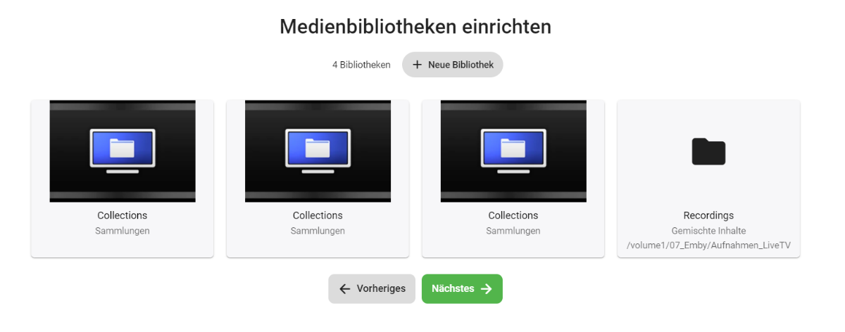PaoloPinkel 6 Posted August 19, 2021 Posted August 19, 2021 (edited) Hallo, nach dem Update auf Synology DSM7 war in Emby komplett alles weg. Daraufhin habe ich ein Backup eingespielt. Danach waren alle Bibliotheken 3-fach vorhanden. Jedenfalls möchte ich Emby jetzt komplett neu aufsetzen, also deinstalliert und nochmal insalliert. Aber schon bei der Ersteinrichtung erscheint "Collections" sofort wieder, wieder 3-fach. Wäre super wenn mir einer sagen kann, wie ich eine saubere Neuinstallion hinbekomme. Edited August 19, 2021 by PaoloPinkel