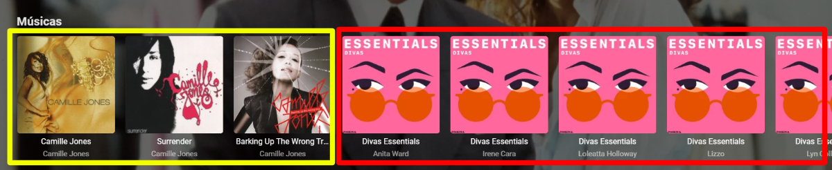 Guest Posted August 20, 2021 Posted August 20, 2021 (edited) Hi, The image shows Latest Songs and it's fine, but I believe I made some mistake in the Song folder structure. The yellow highlight shows three artist albums and it's perfect. The red highlight shows that the album with multiple artists separates the same album into multiple albums, one for each of the 100 artists that are on the same album. The folder structure for Music, albums with multiple artists, I use it like this: /Musics /Musics/Various /Musics/Various/100 Greatest Hits (2021) I always used this structure and the album cover was always displayed on the homepage with several artists only once. I would like some help on this. Thank you very much from now on. Edited August 20, 2021 by CarlosLima