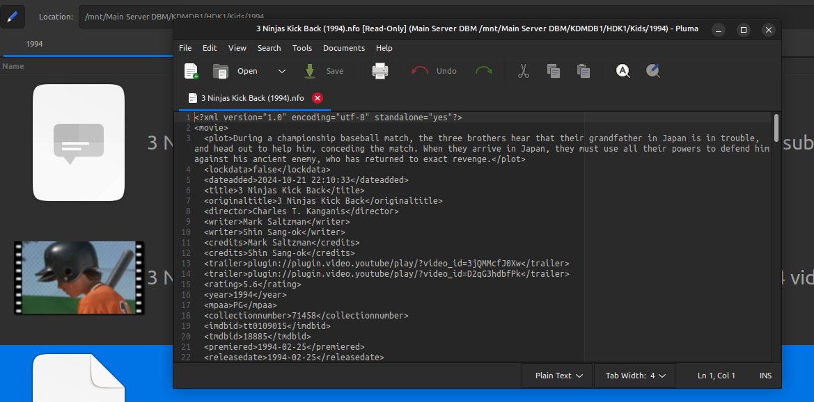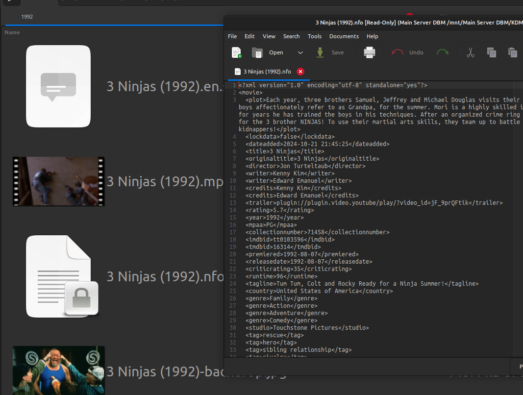 Madtitan 5 Posted November 9, 2024 Posted November 9, 2024 On 11/7/2024 at 10:06 PM, Luke said: OK. By the way, Emby doesn't use <collectionnumber>, only <set> Is there still an issue at this point? Gotcha. I added some screenshots of the nfo with the collection number tag i posted, if Emby does't use that, something is creating it. I also have plex, but they dont use .nfo's. I added more things that create collections but when i delete the collections from the GUI they don't show up again. I guess that when deleting the collection manually it updates the .nfos automatically because I never access them manually. Other than that, thank you for assisting with this issue and making time to help figure out what was going on with it.