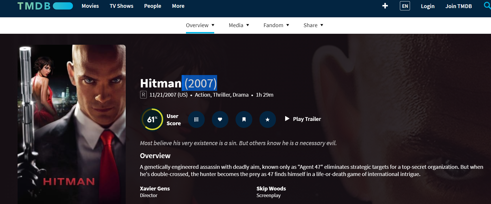 JeremyR 11 Posted August 28, 2021 Author Posted August 28, 2021 (edited) Thanks for identifying the misnomer. I know it used to be called "Hit Man" and had watched it on Emby under that title. Now it is "Hitman (I) (2007)" on IMDB. I used the right id and have it properly listed again. IMDB seems to be changing names. I have seen this (i) or (ii) added to names recently. Edited August 28, 2021 by JeremyR