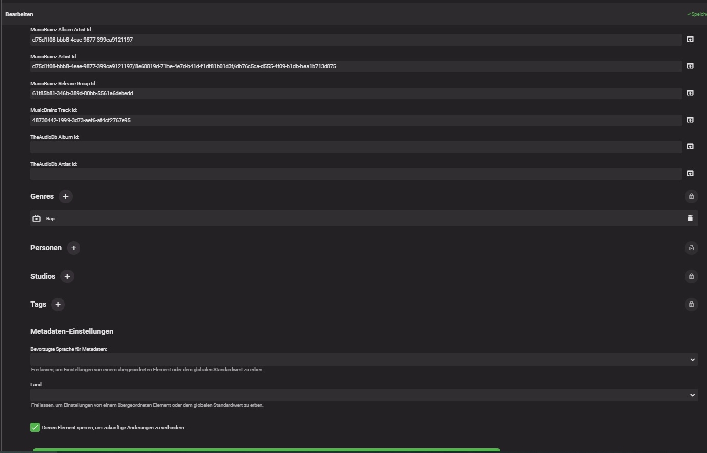 Zauberwaldi 4 Posted August 25, 2021 Posted August 25, 2021 Hi @all. Im new to Emby and Currently working my way trough my wish Setup. Movies/Series are good, but my problem is the Music Libarie. Im working with Mp3Tag and Picard since years, so my Music files have all the needed Tags... Only Exception that looks like a problem are my features. I like them in the Artist tag and not at the end of the title. Filenames looking like: Artist,Artist 2 & Artist 3 - Title.filetype if they are from an album then they are Sorted like this: Artist/Album/Title.filetype This seems to be the problem. Emby is only getting the first and second artist correct and then adding (if more) new artist groups like Artist, Artist2, Artist3 & Artist4. So i was working my way trough the Metadata Manager and Edited them and set the Lock Option on Songs that i edited. First Emby is getting them then correct but at the end it messes the whole db again. Dont know what i can do, because the option should lock the files/tags, but it dosnt happen.