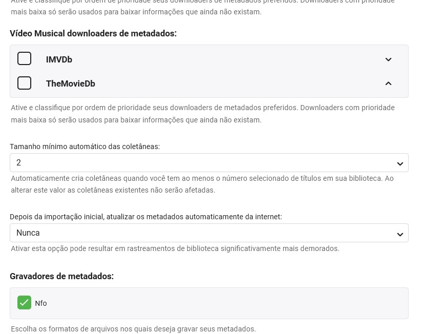Luke 42077 Posted March 17, 2022 Posted March 17, 2022 14 hours ago, gsites said: Não fiz a respeito do VA, mas não corresponde a maioria dos artistas da musica. No Plex corresponde, mas no emby não HI there, how you have configured the metadata options in your music library?