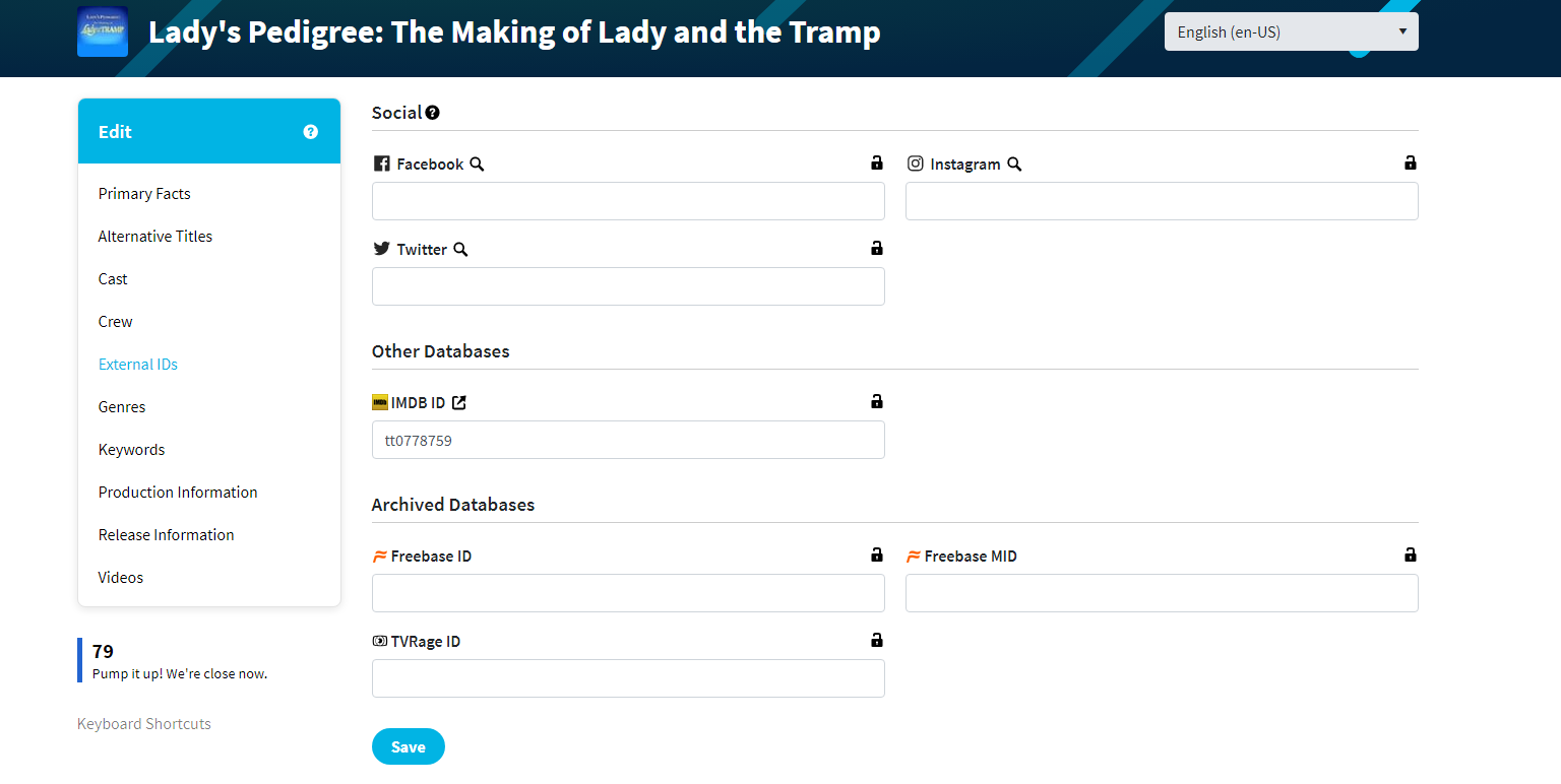 Happy2Play 9780 Posted September 12, 2021 Posted September 12, 2021 37 minutes ago, roaku said: I still think it's probably TMDB that needs to be updated to properly link to the Trakt and IMDB entries, but that will take some more digging to verify. TMDB would need to add trakt to externalids as they currently do not exist from what I see, if this were to come from them.