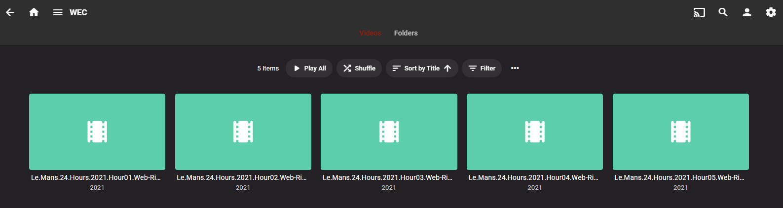 tampoon 8 Posted September 15, 2021 Author Posted September 15, 2021 for sure, and thanks for the help. so i created a mixed content library called WEC. i have it pointed at 1 folder as a source. i am about to watch the 24hr of leman race which is broken into 1hr segments. example file name is "Le.Mans.24.Hours.2021.Hour01.Web-Rip.720p.60fps.X264.English-DC46". i disabled all the meta data search functions but i have tried leaving that on it seems to make no difference. and when i go to the library from the web interface or any other client it just shows 24 files all named Le.Mans.24.hours the rest of the name is removed. and this makes it impossible to know whats what. i can see it did order them in the right order however i have a couple files that are for the qualifying that i wanted to watch and im not sure what what without going into identify or the metadata editor to look at them. im sure i could use the editor to restore the file names (i assume at least) but i never had to do this before. and since i lost the resume function on some of my client tv's it makes it harder to keep track of my place.