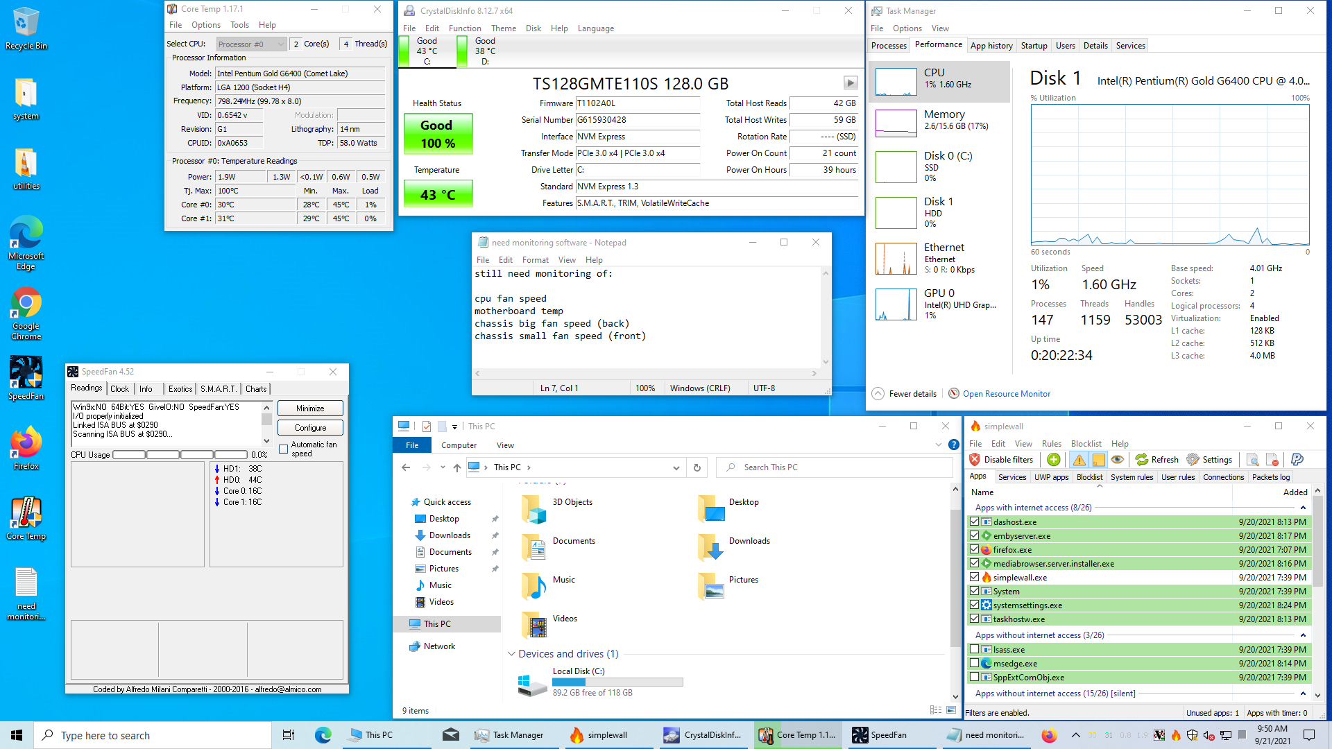 Bingie 99 Posted September 21, 2021 Author Posted September 21, 2021 LOL! I hate that windows runs whatever it wants, whenever it wants, and there's not much you can do about it... EXCEPT what I did: 1. I installed a clean Win 10 Home (with network disconnected). 2. I then installed simplewall to replace the windows firewall, and prevent windows from permanently accessing networking. NOTHING! EVER! 3. I then used the Windows10Debloater power shell script to strip down windows to bare minimum, removes bloatware, cortana, one drive, telemetrics, etc. Removes all that stuff from the registry. Stops windows scans. Stops virus scans. Basically neuters windows, makes it sit down and shut up. Plugged in Ethernet cable. 4. Install a few more utilities (monitoring mostly): crystaldiskinfo, core temp, tightvnc, and firefox w/ blocking addons. 5. Install Emby server. Still getting it ready for a move. On simplewall, enabled the 4 windows processes required to allow windows file sharing on local network, so I can connect from my desktop pc. Everything else still blocked. ... Today, going to move my media HD from old server to this new one. Move Emby programdata and system directories. Bring Emby online, then clean it up. If that doesn't work, delete and try it again. After Emby is done, going to install Stablebit Drivepool and Scanner. Get my media redundancy done. After that, I want to backup the boot drive to somewhere, probably to just the drive pool to start. Then build a bootable USB stick to repair windows if it gets damaged. Still not sure what I'm going to do about remote monitoring. I love the windows built-in Taskmgr, it's brilliant and beautifully done. Contains 95% of monitoring info. Wish it had a few more things like cpu temp/fan, motherboard temp, chassis fans, ssd/hd temps. I'd like to find a remote tool to monitor all that stuff together in one place, and view it from my phone. When home, can always just connect to tightvnc. There are ways to do it. Windows has built-in monitoring utilities perfmon/resourcemon. Can write a script, put it in task scheduler, which will allow me to remote monitor. Hoping to find all that already done by somebody else, still checking free utilities on Internet. That should be it. Can move the server out of the way and monitor remotely.