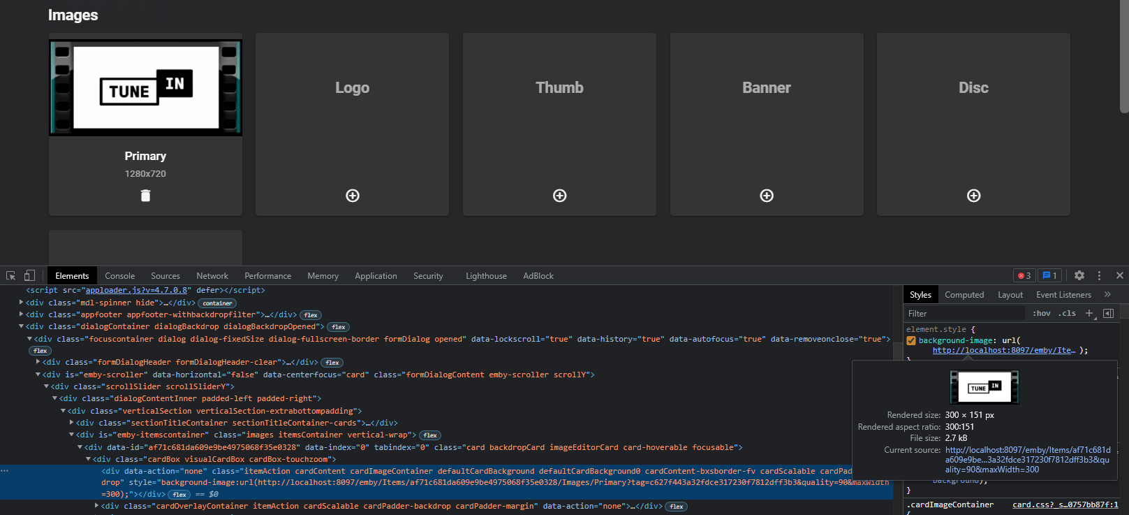 danergo 37 Posted September 24, 2021 Author Posted September 24, 2021 No, there is no mini-image neither in FF nor in Chrome(Main browser). However in FF I can select "View Background Image". However even if I select that, FF shows a rescaled image, so I also have to play with the URL to not let Emby to resize and rescale. So this could have worked also, but I'm happy to know where are these images really stored.