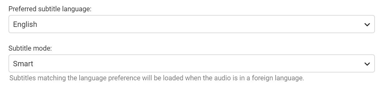 However, as can be seen in the pictures, Emby will NOT play the English subtitle file unless I manually switch it on from the subtitle section. I thought that Smart mode would automatically play the external subtitle file IF the detected language was not English, and if the external subtitle indicated a language that matched the chosen preferred subtitle language? I'd appreciate any help here, ideally I'd like for Emby to be able to recognise English flagged external subtitle files and play them automatically if the media file is not flagged as English.