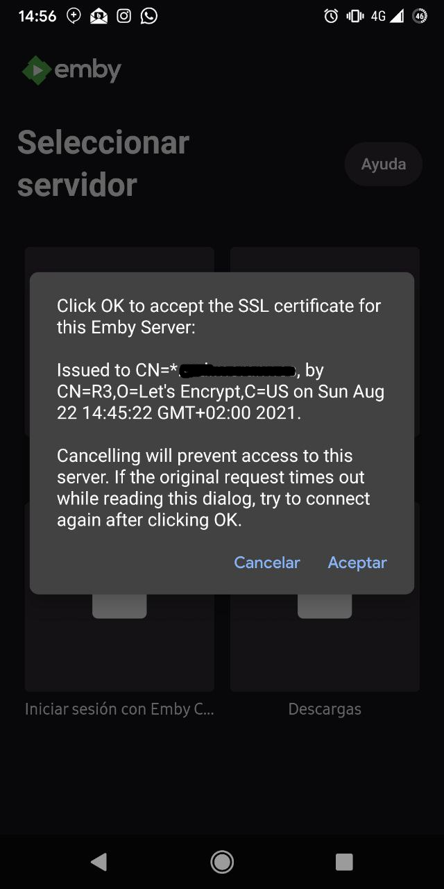 nague 5 Posted September 30, 2021 Author Posted September 30, 2021 @neik I'm using acme.sh to renew my let's encrypt certificate, and this command to convert to pfx: acme.sh --toPkcs -d <domain> [--password pfx-password] In the meantime, same behavior in my side, Emby for Android Mobile keeps asking me that to accept the certificate, but it's working fine then.