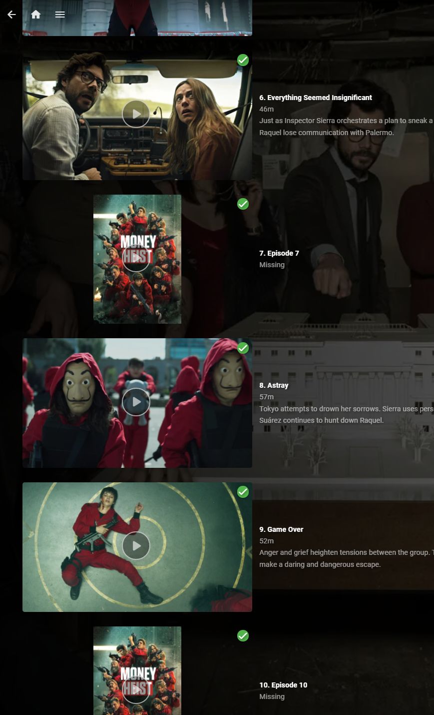 Roger Graham 6 Posted October 6, 2021 Author Posted October 6, 2021 Hmm... I see that it has created .nfo files for those "missing" episodes, but is not showing the data. For exampl e, for ep10: Money Heist S02E10 Berlin's Wedding.nfo