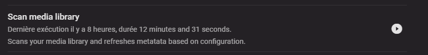 Nostromo86 17 Posted November 22, 2021 Author Posted November 22, 2021 (edited) 21 minutes ago, Luke said: Hi, that's strange. Try running a library scan and see if that helps. Hi, Thanks Mhmm ok but you talk about Scan media library ? view attachments Because the scan is done every 12 hours the problem has been there for 2 weeks Edited November 22, 2021 by Nostromo86