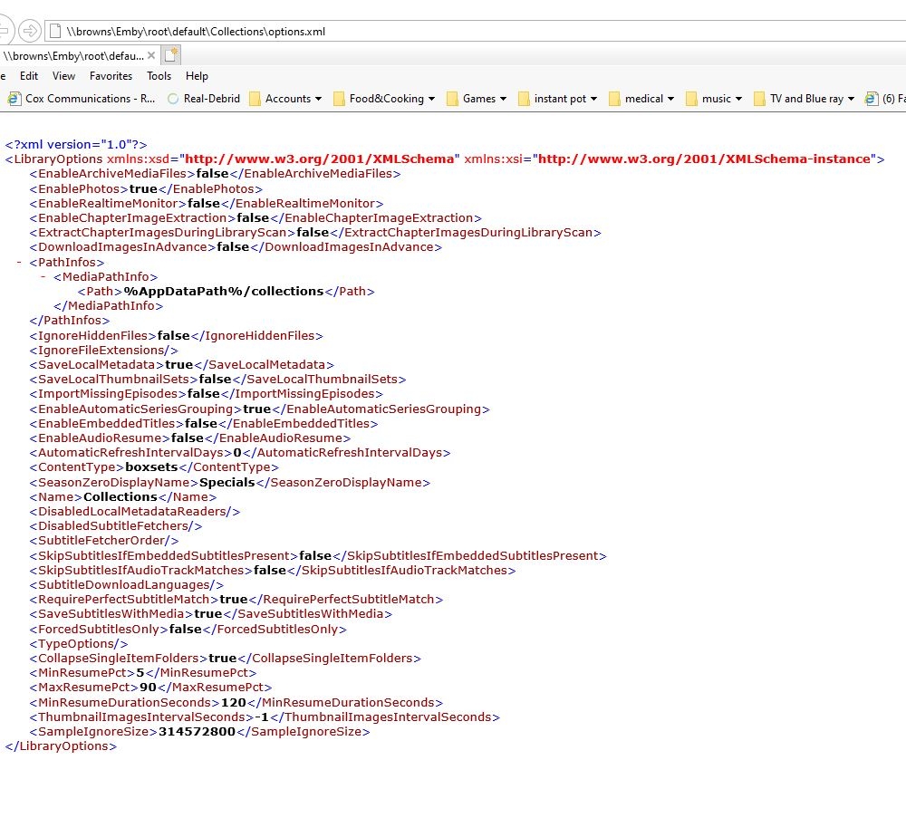 Omahabrownie 9 Posted November 29, 2021 Posted November 29, 2021 I have Emby server 4.6.7.0 on a synology nas with DSM 7. I found that yesterday most of my collections where not showing up in the program. I checked in emby\data\collections and my collections are there. I checked the default collection xml and it is showing the correct path, but only a few of them show up. I tried reentering one, the backdarft one and it now shows up but when I look at the emby\data\collections the one for backdaft is still the old one and it does not say I created it today. I checked my log files and the last one made was 8/11/2021, which would not show what is happening now. I am hoping some one has an idea what is going on. Thanks