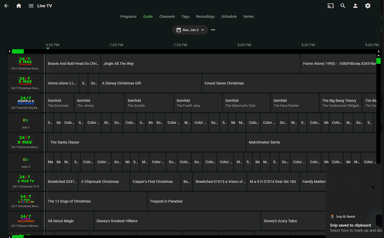 eeeeeesy 31 Posted January 2, 2022 Author Posted January 2, 2022 1 hour ago, cayars said: I've never seen ersatz tv before so I'm not sure how it works. The show times you show are very unusual. Can you take a screenshot and show us what this information looks like in your guide?