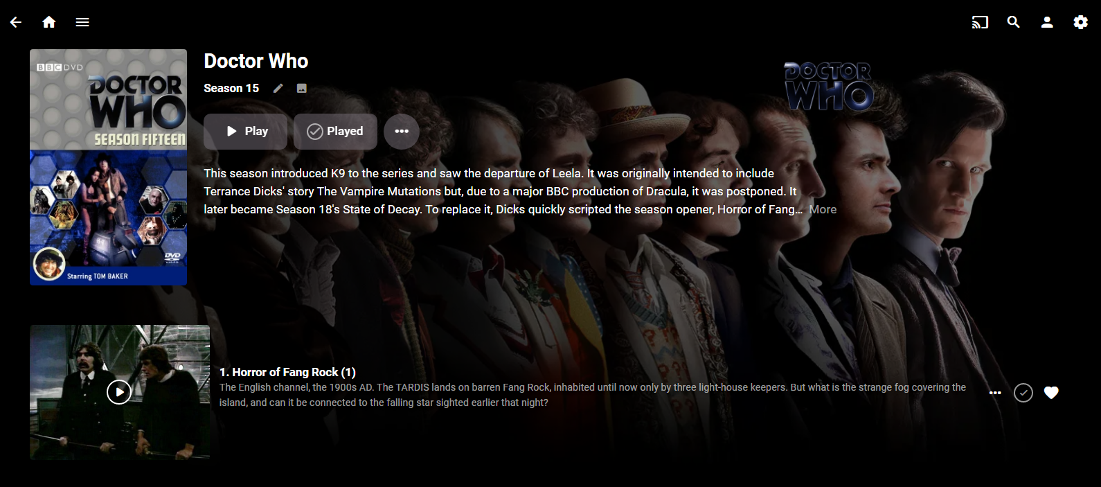 Happy2Play 9780 Posted April 19, 2022 Posted April 19, 2022 19 minutes ago, reedfh said: I'm pretty sure this is a problem with Emby or maybe i have some setting off. I think the confusion comes from the fact that BBC made 2 different runs for Doctor Who. Season 1 to 15 (That ended in 1977) then restarted it with Series 1 and are currently in production of Series 14 i believe... Emby seems to be trying to pull meta data from the Series, instead of from from the Seasons... I'm guessing it sees duplicate episodes and simply pulls the more recent. What does TVDB have? Emby does not pull individual episode, it get the entire Series in on pull from TVDB. Are you saying the 26 season version is wrong? Doctor Who - TheTVDB.com (1963) Doctor Who - Horror of Fang Rock (1) - TheTVDB.com