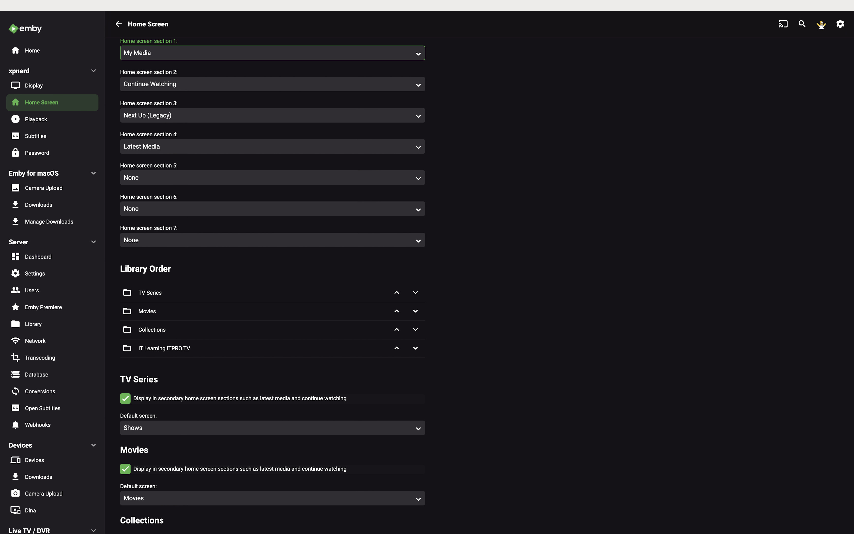 OnimatsuO 0 Posted January 10, 2022 Posted January 10, 2022 Hi all - my user account just recently seems to not want to show Latest Movies and Latest TV Series under the sub section "Latest Media" no matter how I access EMBY (Be it AppleTV, LG TV, iPhone, the web ui, etc..). I've tried all manner of options under the "Home Screen" section, enabling, disabling the missing items, logging out, log back in, changing orders, etc. It only happens to the one user account as the rest of my users are fine and everything works as intended. I don't want to blow away the profile and just build a new one, so I'm wondering if there's a file I can rename and emby will rebuild the UI ? Or inject some sort of default file to reset it this error feels like just a config file somewhere) EMBY Server is currently running in a BinHex Docker container and has been running without fault for years. Last week, I logged in to the account locally from LG TV app (which I use daily) and Latest TV vanished across all my devices, so I'm thinking maybe the LG app corrupted the UI somehow? This did not happen as a result of changes I made as it happened one day out of the blue as I did not start going in and changing the Home Screen ui settings until after the issue happened. I've attached x2 screenshots showing my issue. The firs file, EMBY Issue 1, shows you my Home Screen UI (screen shot taken from EMBY for macOS 2.0.9) and the second shows the options selected for the user. EMBY Server version : 4.6.7.0 (BinHex Docker Container) Docker running on UNRAID and I've mounted out the config and media folders to my SSD Cache drive and libraries (TV, Movies etc) to their local array locations in UNRAID.