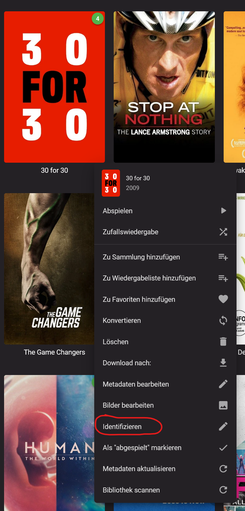 Florian2000 17 Posted January 11, 2022 Author Posted January 11, 2022 (edited) 19 minutes ago, pwhodges said: Actually, with the ability to provide the database ID, you do have that power. But Emby still needs a clear indication of whether something is a film or a series, because on TMDB at least the same ID can be used for a film and a series. In any case, arranging things as Emby prefers is also the power to help it get things right! Paul ok, maybe I don't get it. I just simple don't understand why Emby recognizes once a directory and once I'm able to press the "Identify" Button. All I want is that the "Identify" Button stays always there. Now even with two different folders 1) "Dokus\Lance" and 2) "Doku-Serien\Lance" I get two different behaviors of Emby. In 1) Emby recognizes only a directory and there is NO "Identify"Button as stated in the inital post. So there is also no way to put any other ID there... In 2) Emby recognizes a series ... "Identify" Button (marked red down below) is there... And I really don't get it. The directory structure is completly the same - even the filenames are the same...but Emby recognizes it differently....for whatever reason. And both directories are in the same library... isn't it funny Edited January 11, 2022 by Florian2000