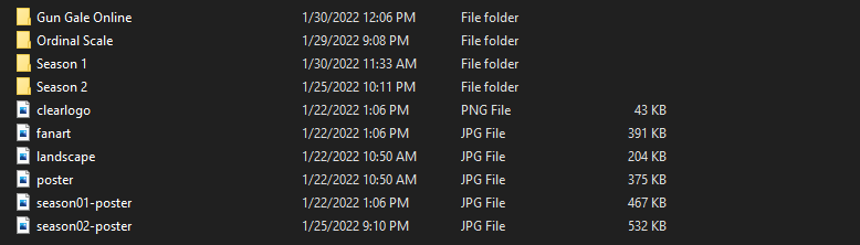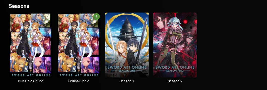 GrimReaper 4749 Posted January 30, 2022 Posted January 30, 2022 (edited) Simple: Garbage in=garbage out. You folder structure is completely off and not following any of the supported naming conventions as per KB: Emby TV Naming : Emby Emby Movie Naming : Emby As per your folder structure, there is no way for Emby to know what is a series and what is a movie there. Since there is not path shown on your screenshot, I'd assume that is parent folder you selected as Library path and not SAO folder. Edit: Upon looking more closely, that apparently IS a SAO folder, which makes it even more convoluted having another show and a movie within it. 1. Gun Gale Online is a separate TV Show and you need one for SAO as well for it to be recognized as as series, Season folders alone won't do. Edit: you can't have another TV show inside a different TV show folder, take it one level up ソードアート・オンライン オルタナティブ ガンゲイル・オンライン - TheTVDB.com ソードアート・オンライン - TheTVDB.com 2. If you want Edit: Can't have it as a separate Movie there either, if you'd like to have Ordinal Scale as a movie, rename that folder to "Sword Art Online: The Movie – Ordinal Scale (2017)" and take it one level up, or if you want it as SAO Special, rename to "SAO S00E22" and put it in SAO "Season 0" subfolder. Sword Art Online: The Movie – Ordinal Scale (2017) — The Movie Database (TMDB) (themoviedb.org) ソードアート・オンライン - Aired Order - Specials - TheTVDB.com 3. Your files are missing Season identifiers, which can be somewhat mitigated with season folders and hope they'll be recognized or just name them properly as per KB and be sure they will 4. "Mixed content"-type library means you can have both Movies and TV Shows inside that library, but same structure/filenaming needs to be respected as if it were separate content-type Hope that clarifies why you're wasting time. Cheers Edited January 30, 2022 by GrimReaper Append 4