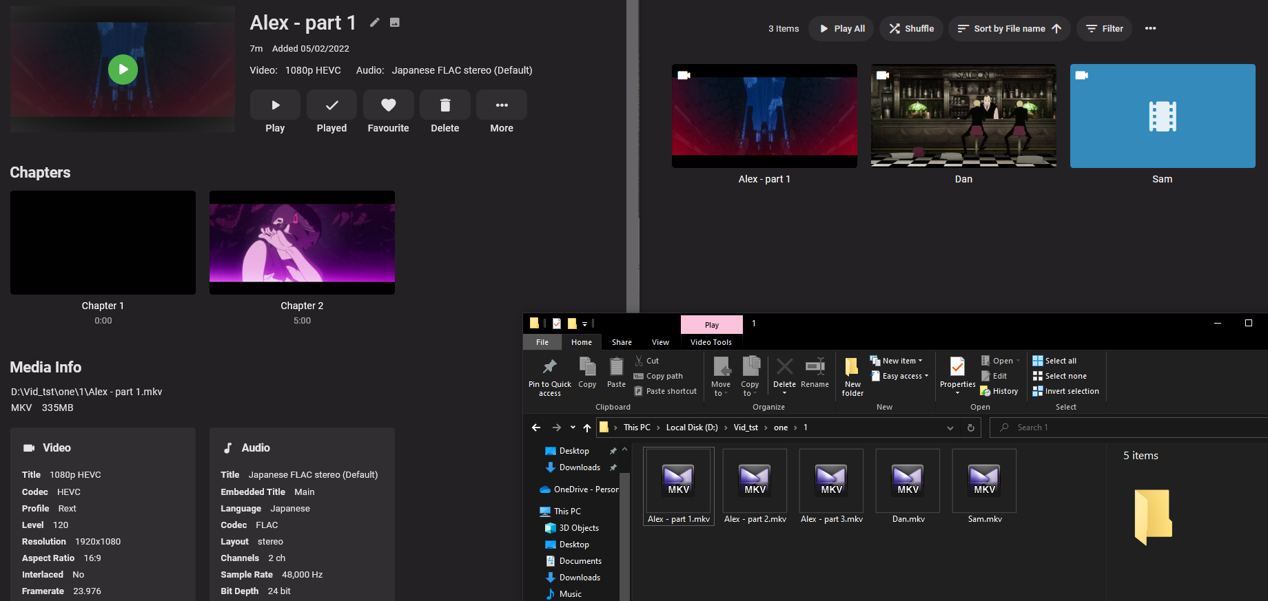 Problem- additional parts section will not show up, if more then one video file in directory.