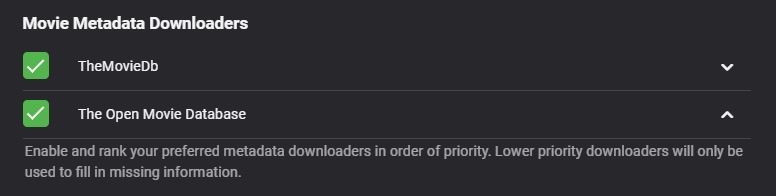 Tangsgod 22 Posted February 6, 2022 Author Posted February 6, 2022 1 minute ago, Happy2Play said: Please post the server log showing those items being imported/queried. What is your metadata provider order? But testing those specific examples above returned correct name (year) movies for me. Only one I had a issue with was Banzï (1983) as I don't this them name anywhere. Is it suppose to be Banzaï (1983)? Renaming found without issue. But a wild guess is you have enabled allow adult metadata per your other comments about x movies. I'm sorry @Happy2Play but i did it few hours ago I don't know if it will be in the logs. Did you made those match without the accent? About the adult content it was turn ON for my first scan, I uncheck it after those.... errors... My metadata providers: embyserver.txt
