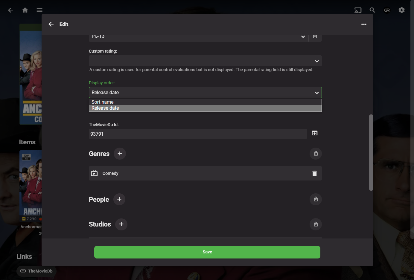 Meijinhada 4 Posted February 9, 2022 Author Posted February 9, 2022 (edited) 15 hours ago, GrimReaper said: Emby will not use collection artwork from your personal folders; however, if you manually place artwork in Emby's collection folder and appropriate subfolder (under Windows, it is located at install-dir\programdata\metadata\collections), it'll be picked-up upon scan. Nope, sort order (or collection items) are not written in collection.nfo, only <set> tag(s) are read from item NFO to denote if an item does belong to a collection or not. You can use Sort name order (Edit Metadata of a Collection). As you can lend your support here, as well: I have the server on my Synology. And for some reason, there's no Emby folder that I can find. So I'm kind of stuck on that one. EDIT: Actually, nevermind, apparently I had to...give my username access even though I had it already. Whatever. Folder is visible to me now, so I'll see how that works out. Thanks! Edited February 9, 2022 by Meijinhada 1