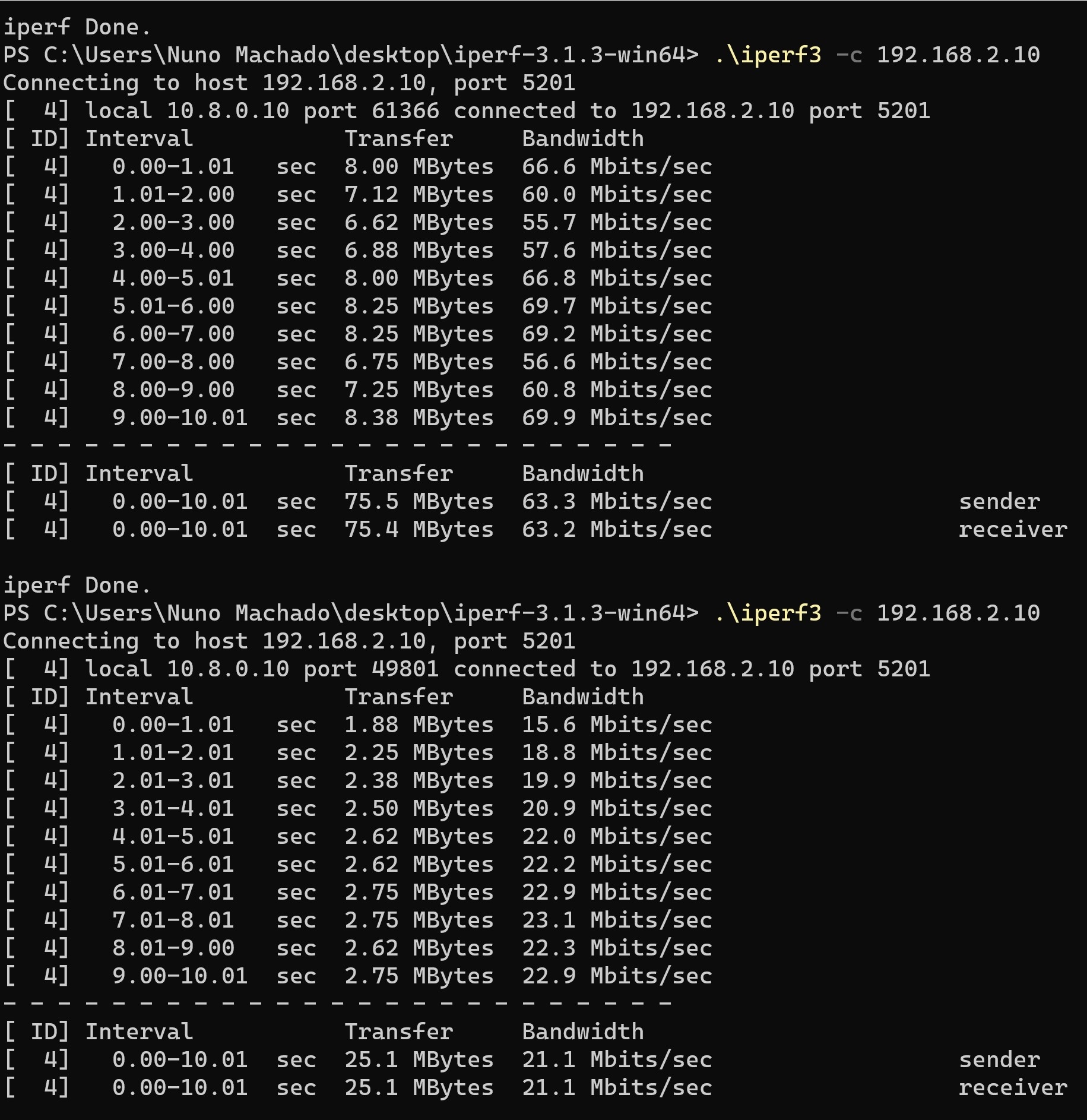 ouraman 0 Posted February 11, 2022 Author Posted February 11, 2022 hi, well i made a few tests with iperf between the server NAS (with openvpn) and the clients to measure the real bandwith (the NUC with the emby server stays righ next to the NAS, so is the same) below i have a screenshot with the test * above i'm using an Access point limited to 100mbps in my network (that's why you don't see the full Gb) * below i'm using the VPN ... so, limited to 20mbps so, this could be the reason? so strange, every movie like 4k i can see without any problems but some series i can't without some stuttering i guess most of the movies goes around 20mb bitrate and some of the series goes above that, could reach the 30 etc etc if that's the reason, i tried without any luck to improve the bandwith.. i guess i'll try to change the VPN from the NAS to the NUC, just to see if i can improve something or probably changing to another vpn like wireguard ...