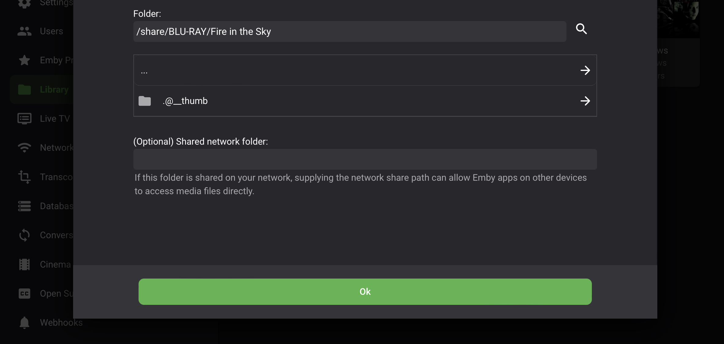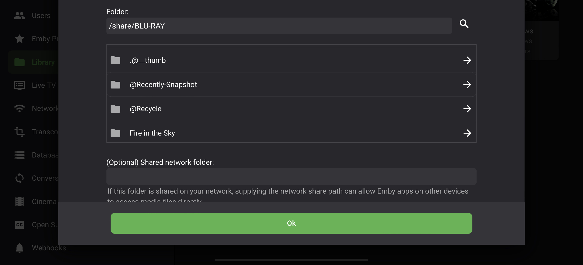 I have the latest version of emby 4.6.7.0 with qnap. When I go to add a folder in the library settings it see’s the folder but not the movie