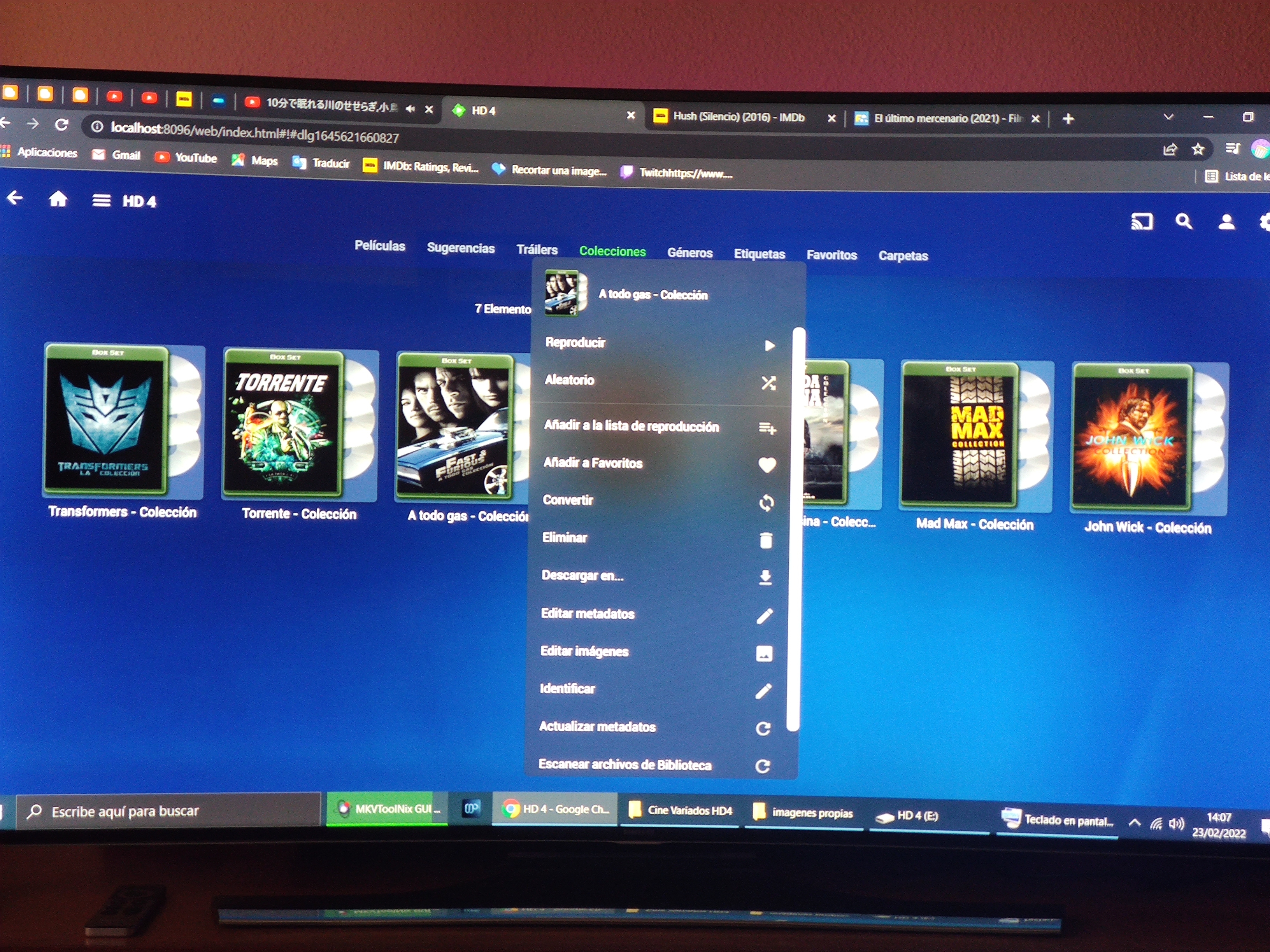 GrimReaper 4739 Posted February 23, 2022 Posted February 23, 2022 (edited) 24 minutes ago, HomeCinemaSalon said: Si, la aplicación web en pantalla completa o theater que inicie con windows Have no issues starting either of those in fullscreen; for Web app, it is controlled by your browser and not by Emby, ensure IT is launched fullscreen; for Theater Desktop, you might append install-dir\data\electron\windowstate.json to read something like: {"x":-8,"y":0,"width":1920,"height":1080,"state":"Fullscreen"} Adjust as desired. 11 minutes ago, HomeCinemaSalon said: No me aparece Add collection That is wrong place, you need to do it from any of your library tabs except Collections or do it from movie detail screen. Edited February 23, 2022 by GrimReaper 1